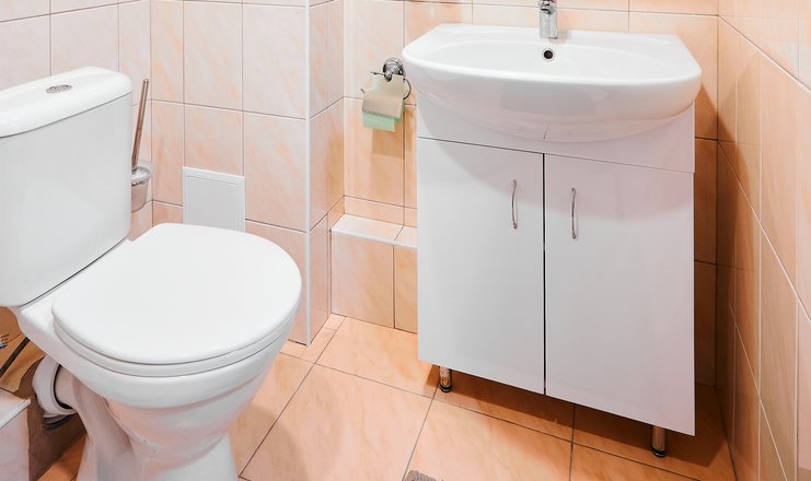 Санузел: с душевой кабиной, тапочки, туалетные принадлежности, фен